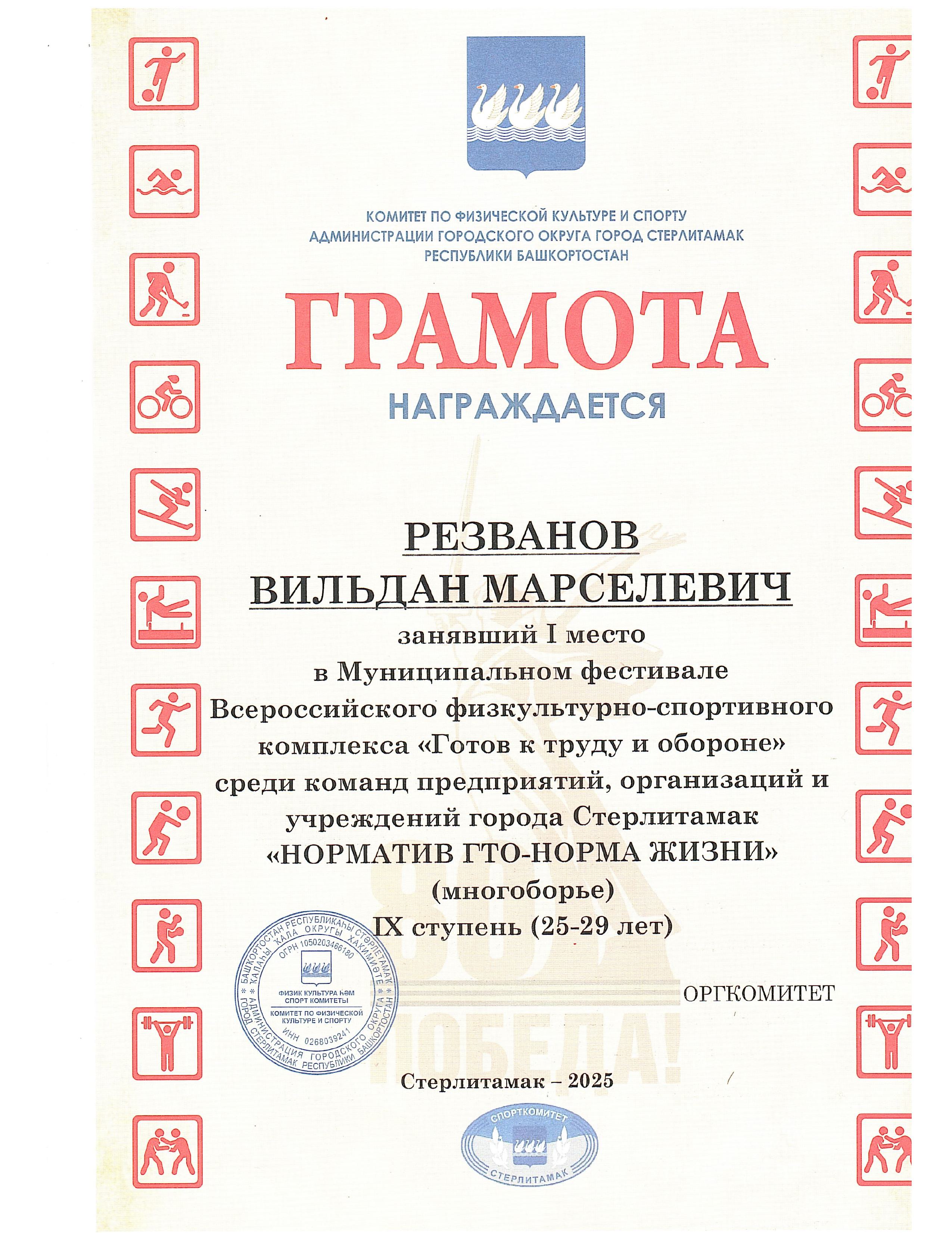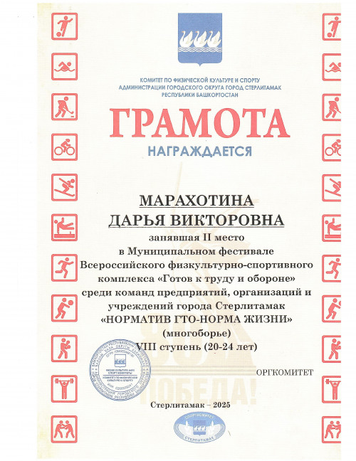 Они награждены грамотами комитета по физической культуре и спорту администрации городского округа город Стерлитамак Республики Башкортостан!!!